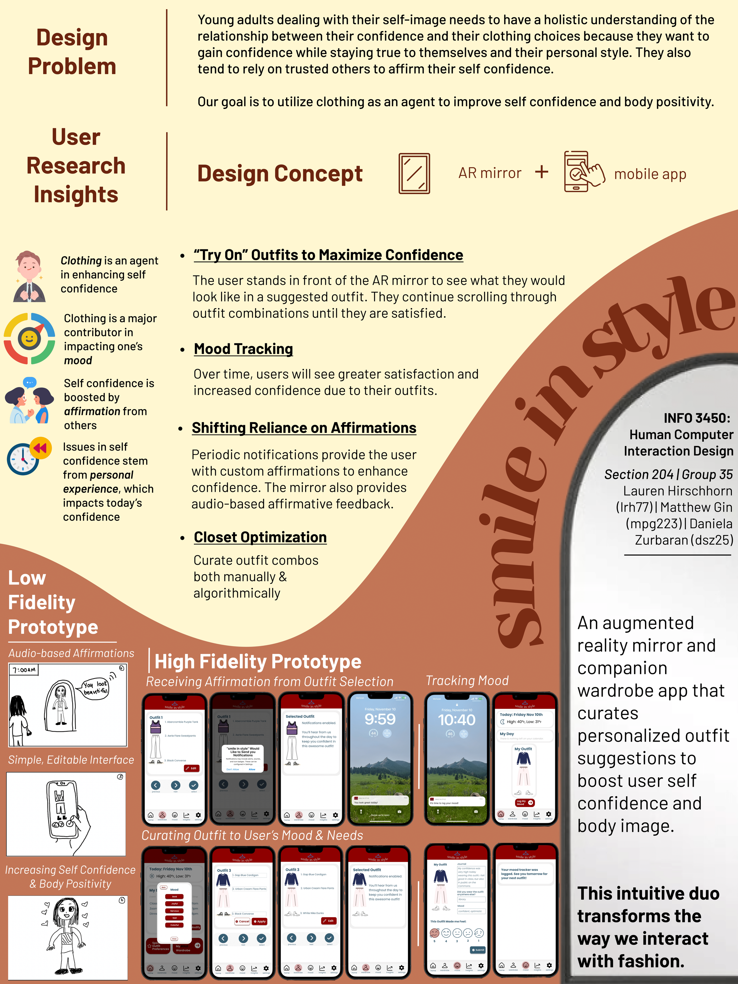Project Synopsis: How can we help young adults dealing with their self-image have a holistic understanding of the relationship between their confidence and their clothing choices while staying true to themselves and their personal style?