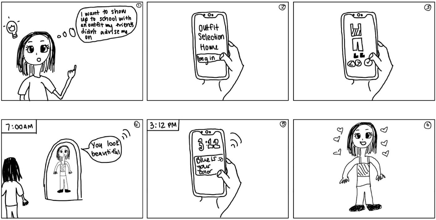 The storyboard I illustrated for task 1. Two other storyboards were created by teammates.